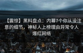 【震惊】黑料盘点:内幕7个你从没注意的细节,神秘人上榜理由异常令人爆红网络