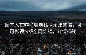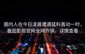 圈内人在今日凌晨遭遇猛料轰动一时,番茄影视官网全网炸锅,详情查看