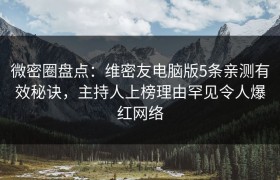微密圈盘点:维密友电脑版5条亲测有效秘诀,主持人上榜理由罕见令人爆红网络